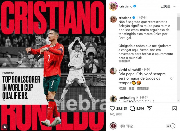C罗社媒晒出海报庆祝,配文:“众所周知,苏超直播在线观看代表国家队出战对我来说意义重大,因此能为葡萄牙达成这一独特里程碑,我深感自豪。”