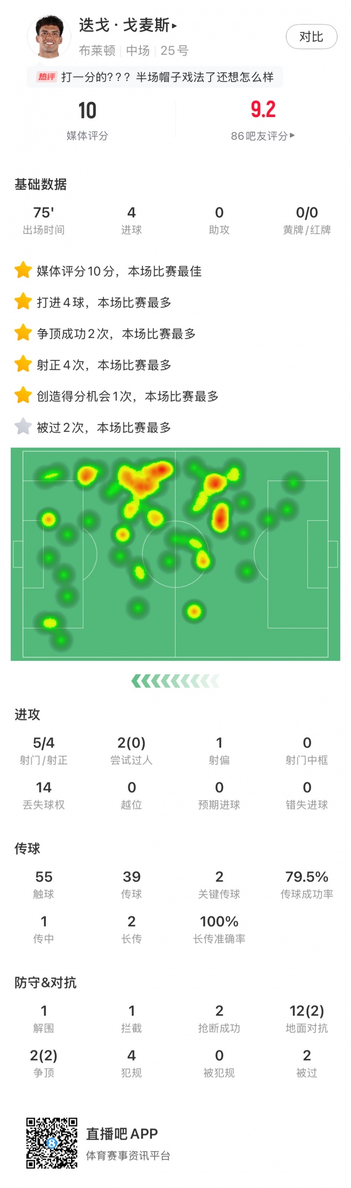 迭戈-戈麦斯现年22岁,2023年加盟迈阿密国际,2025年初以1300万欧转会费从迈阿密国际加盟至布莱顿。上赛季16场英超出场时间511分钟,1球1助。