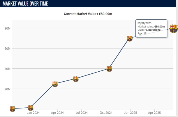 10月03日讯 德转官方更新了西甲各队球员的最新身价,其中巴萨18岁的青训中卫库巴西身价8000万欧,与萨利巴、巴斯托尼并列世界中卫身价榜第1,同时他也是西甲第9身价、巴萨和西班牙队内第4身价、世界第26身价。
