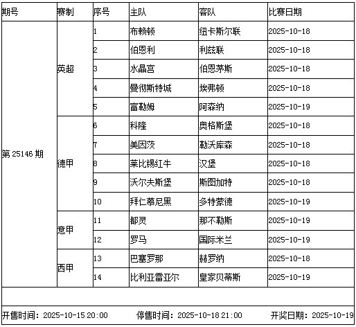 结束国家队赛事 日,五大职业联赛 重燃战火。周六传足胜负彩25146期两场重头戏引人关注:德甲迎来国家德比在线老虎机在线老虎机游戏平台,拜仁主场作战 迎战多特蒙德;意甲强强对话,罗马主场作战 大战国际米兰。其他值得注意的还有英超曼城对阵埃弗顿,阿森纳则在德比中客场应战 面对富勒姆。