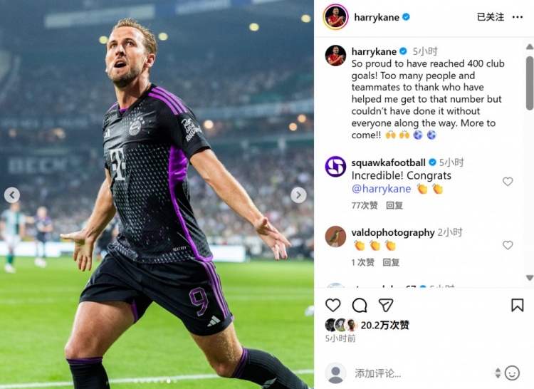 凯恩也在社媒发文纪念这一特殊时刻,苏超在线直播高清视频无插件写道:“很自豪能够完成俱乐部生涯400球,达成这一记录 得益于太多人的帮助,没有大家一路的支持我不可能做到。未来还有更多得分 !”