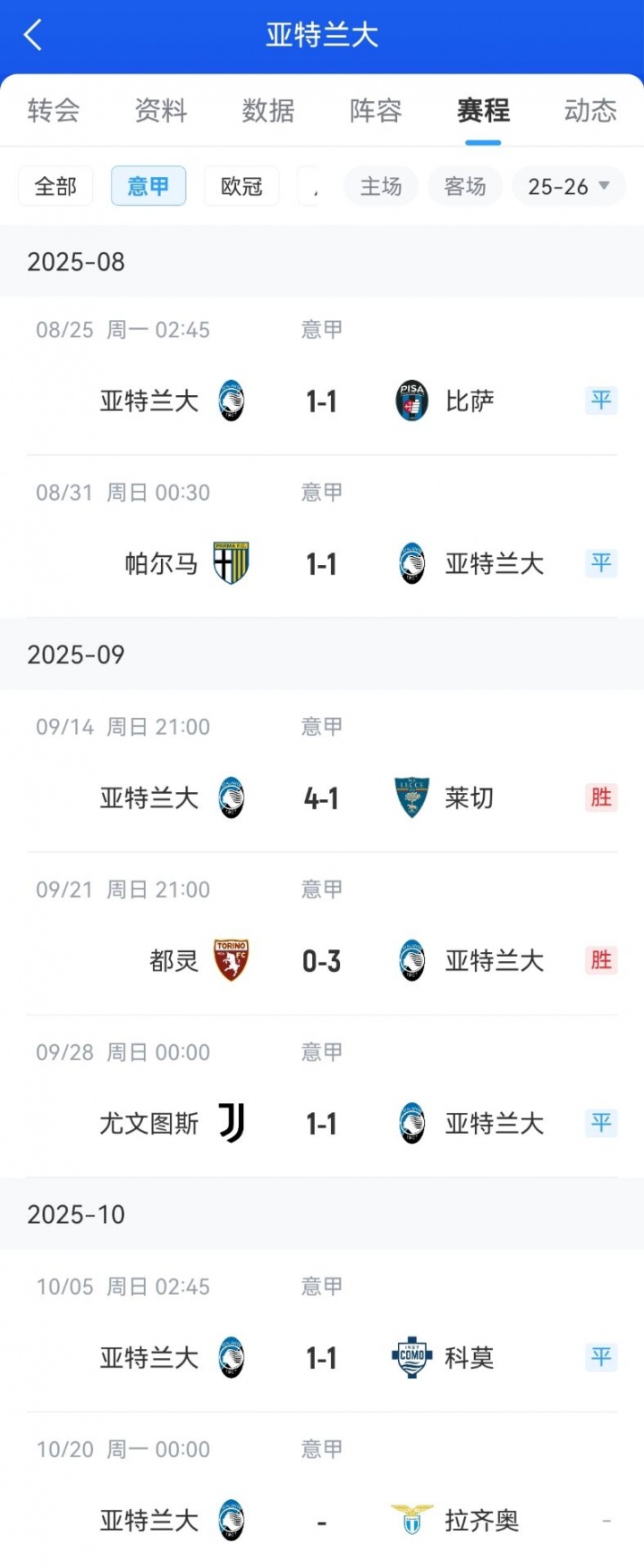 至此,意甲仅剩一支球队仍保持不败:开赛以来2胜4平,苏超在线直播高清视频无插件积10分排名职业联赛 第7的亚特兰大。今日凌晨0点,他们将坐镇主场作战 迎战拉齐奥。
