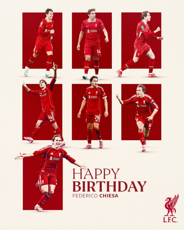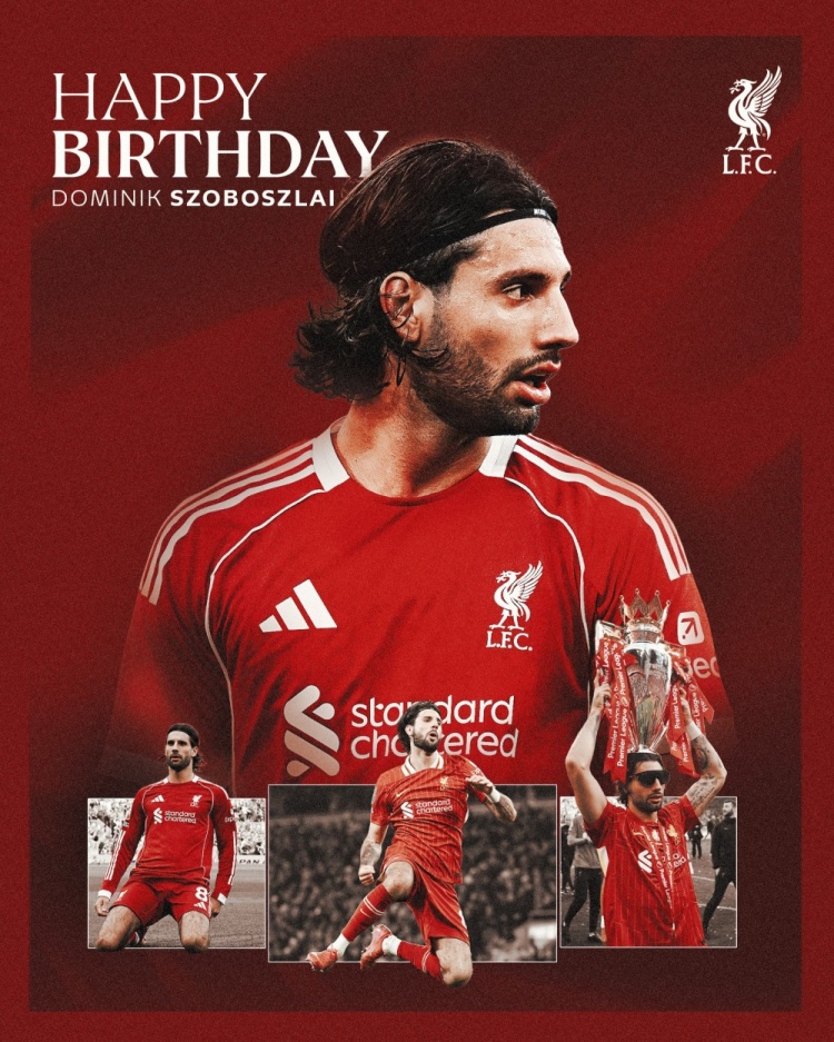 10月25日讯 今天是索博斯洛伊(25岁)和基耶萨(28岁)的生日,利物浦官方社媒晒出索博斯洛伊、基耶萨的生日海报,祝他们生日快乐。