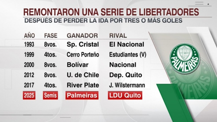 10月31日讯 南美解放者杯准总决赛 次局 赛事 ,帕尔梅拉斯主场作战 4-0击败基多体育大学,两局 总比分4-3反转 晋级下一轮 总决赛 。