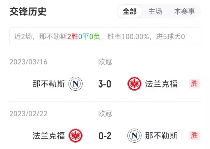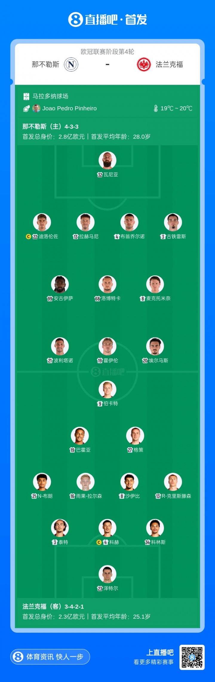 本场赛事 前,那不勒斯与法兰克福均3轮1胜2负,积3分;分别排名欧冠第23、22,法兰克福因净胜球优势高1名。双方上次交锋要追溯到2023年的欧冠,那不勒斯3-0战胜法兰克福。