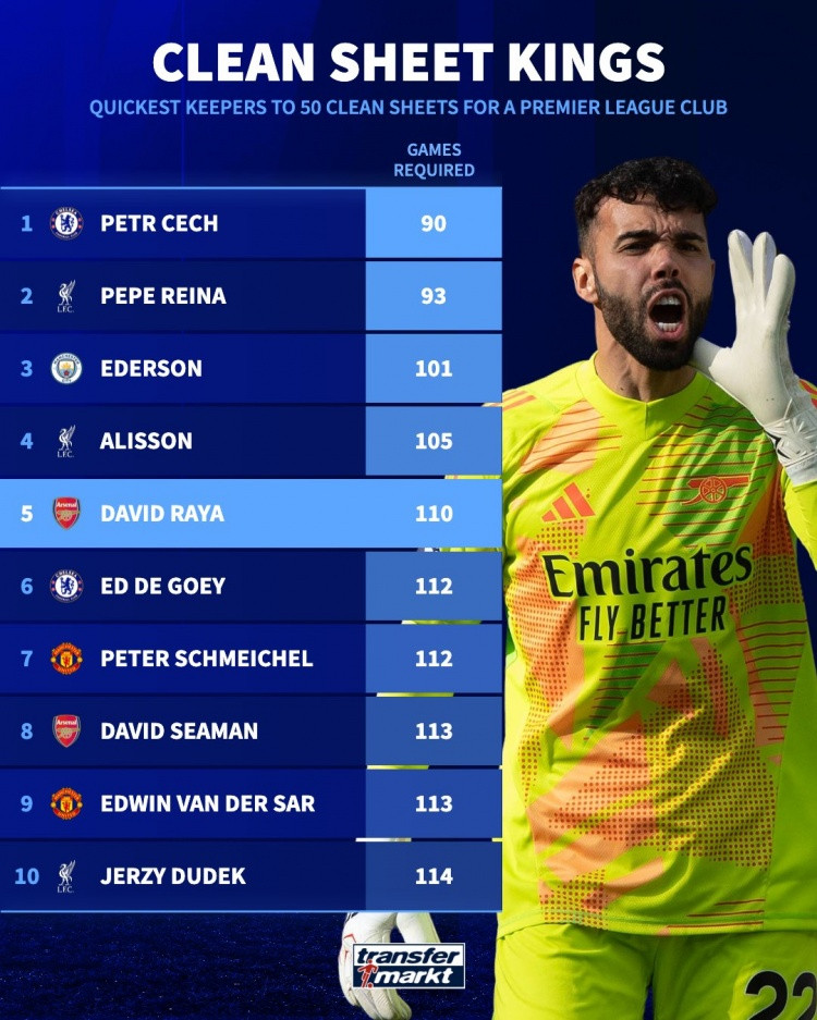 直播吧11月6日讯阿森纳在欧冠客场应战 3-0击败布拉格斯拉维亚,拉亚完成了阿森纳生涯的第50场零封,苏超在线直播高清视频无插件共计用了110场赛事 ,排名英超俱乐部守门员50场零封第五快。